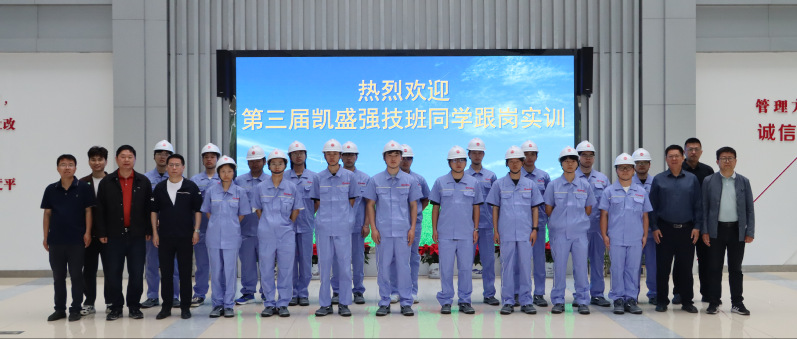 本网讯 近日,金宝搏官网下载机电工程学院第三届“凯盛·强技”班全体学员走进校企合作单位——蚌埠凯盛工程技术有限公司,正式启动为期多日的跟岗实训。机电工程学院副院长乔志杰、智能制造教研室主任查正卫、班级辅导员,与蚌埠凯盛党委副书记、总经理刘锐及企业导师共同出席启动仪式,共话产教融合新路径,共筑技能人才培养新高地。